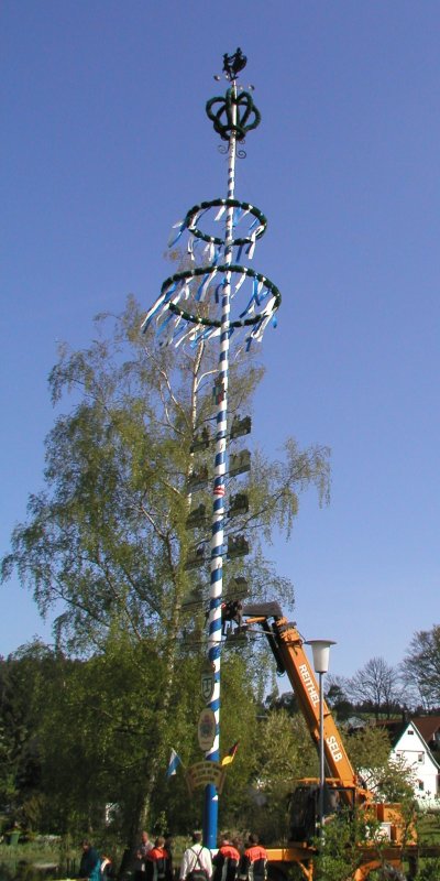 1945 nach Ende des Krieges konnte Deutschland zweifellos ein Zeichen brauchen, das einen neuen Frühling ankündigt. Der Maibaum wurde besonders in Nordbayern und Hessen sehr rasch wieder belebt. Ab 1955 gliederte Papst Pius XII diesen Brauch auch in die Kirchen ein, der "christliche Tag der Arbeit" wurde ins Leben gerufen.