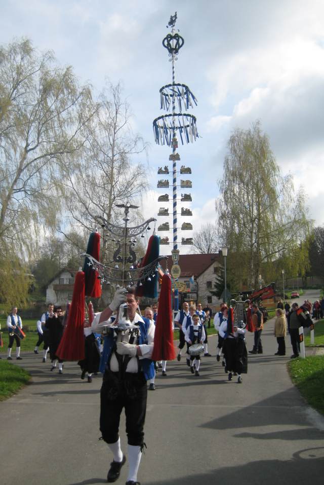 am 1. Mai. Bereits Tradition hat das Maibaumaufstellen, und für das